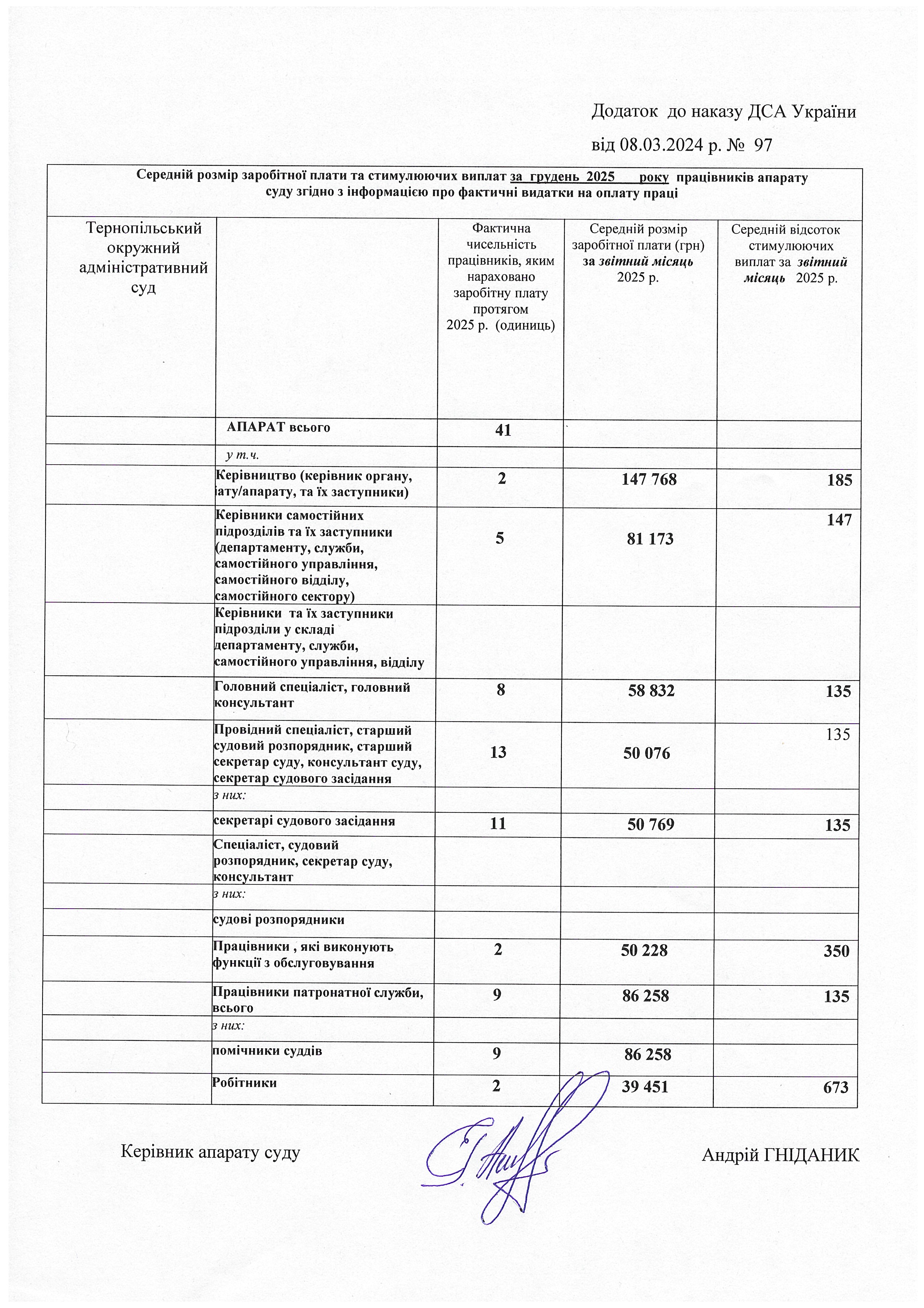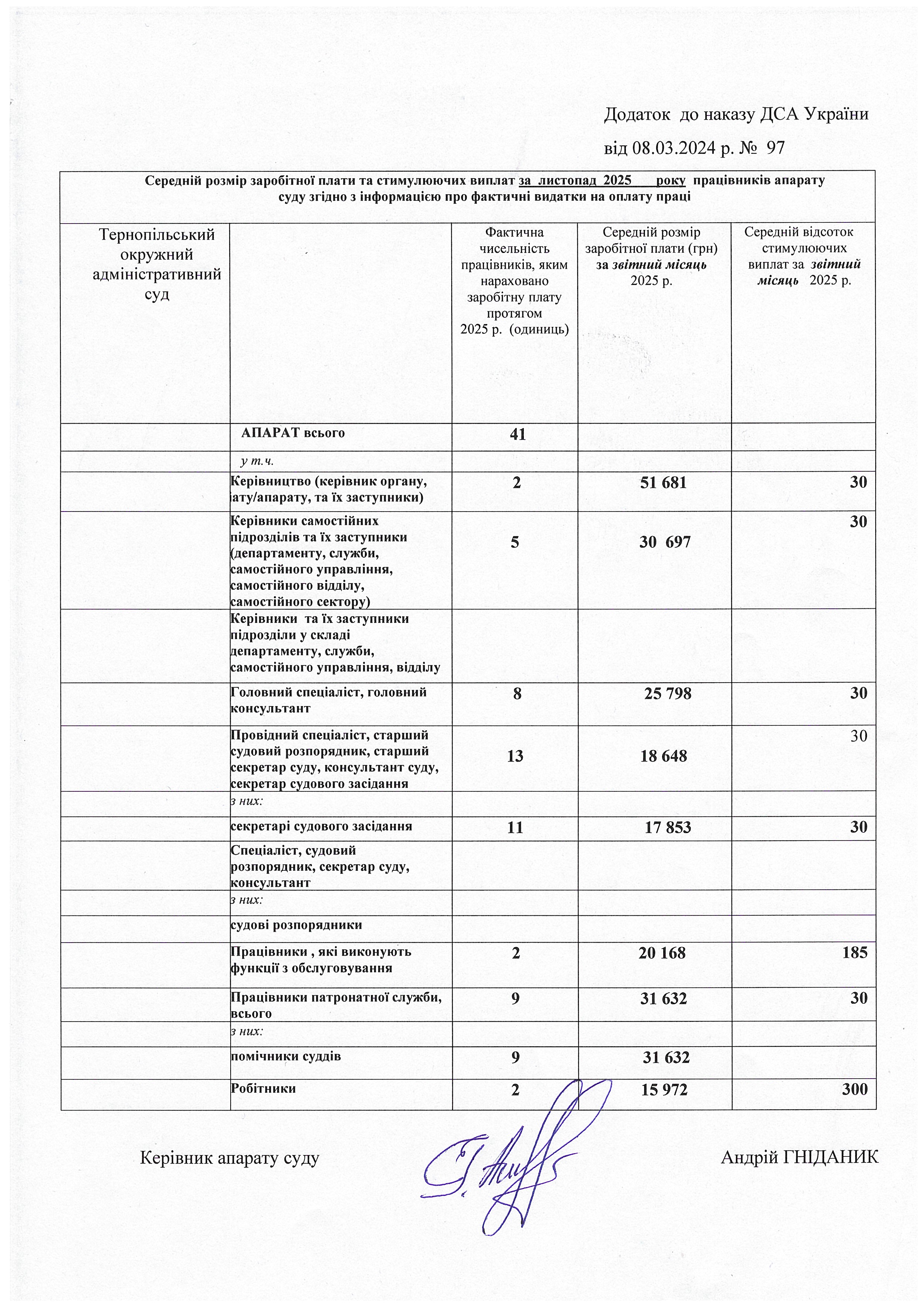 Інформація про середній розмір заробітної плати та стимулюючих виплат працівників апарату суду